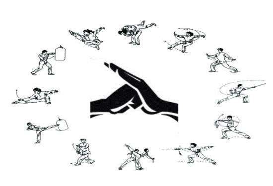 左掌右拳拢屈,两臂屈圆,表示五湖四海(泛指五洲四洋),天下武林是一家,谦虚团结,以武会友。