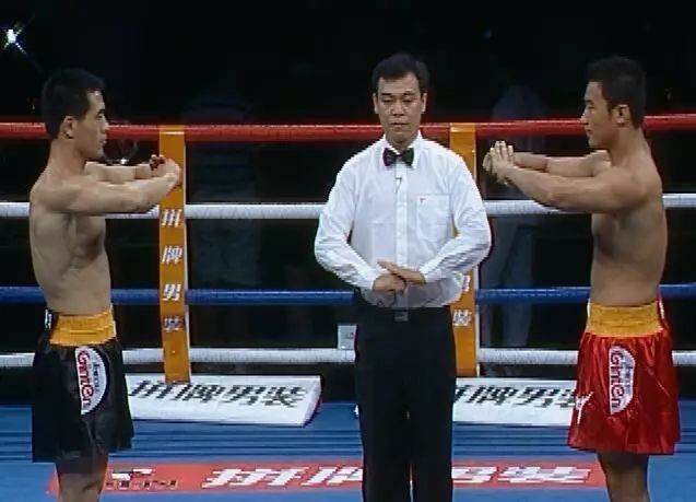 右拳眼斜对胸窝,置于胸前屈臂成圆,肘尖略下垂,拳掌与胸相距20~30厘米。头正,身直,目视受礼者,面容举止自然大方。武术散手在戴拳套练习和比赛时,可模拟行抱拳礼,两拳套合抱于胸前即可。